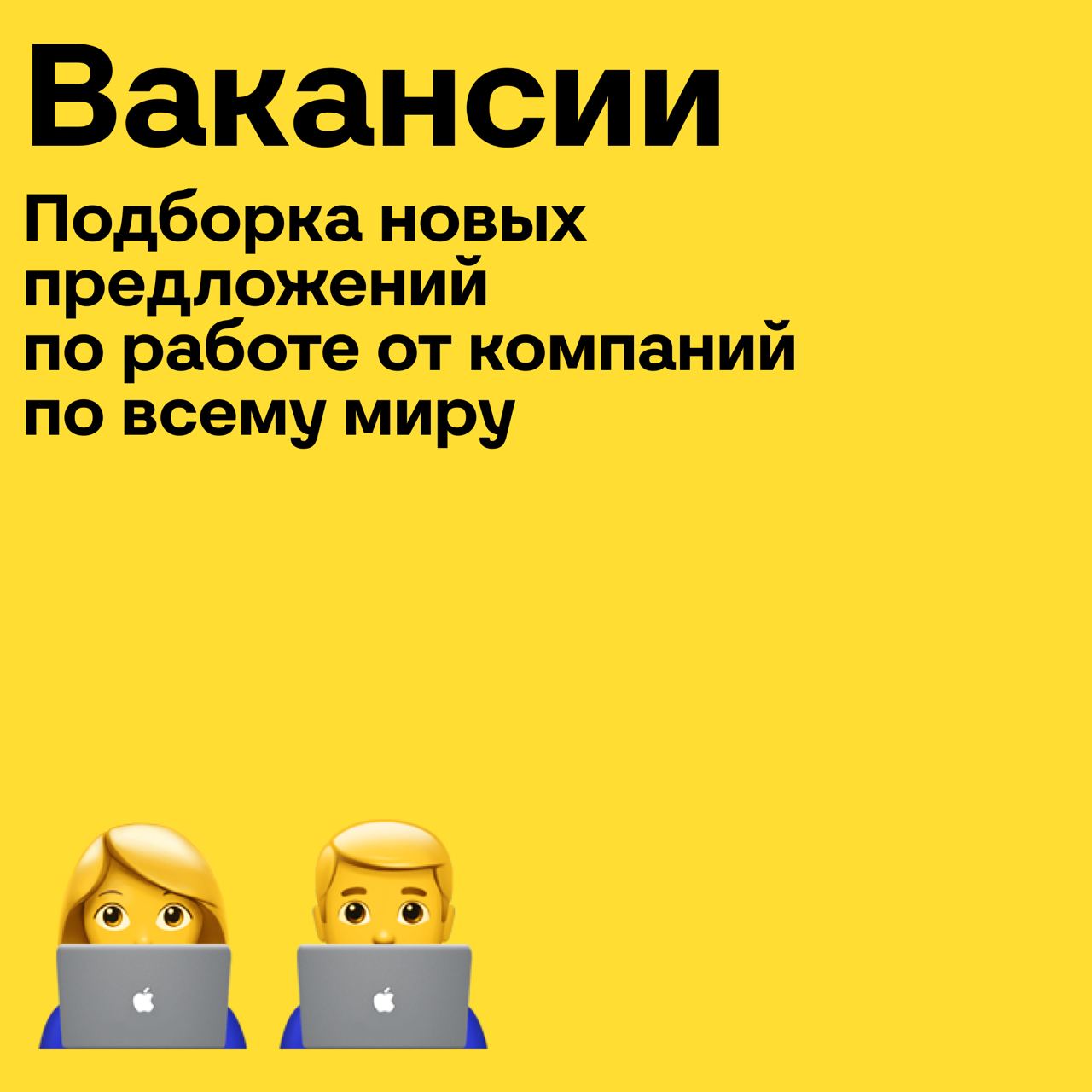 На выходных «Аутсайд» собирает вакансии, которые стали доступны для уехавших и тех, кто ищет что-то новое. Если вы работодатель и хотите поделиться интересным предложением, присылайте нашему боту — @outside_media_bot