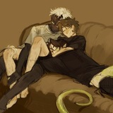 Но к счастью рядом лежала вторая девушка. Клешрейк всегда спала обычно спиной к девочкам если ей выдавалась возможность поспать с краю. Ну не любила она жару. Обычно она спала с плюшевым котом в обнимку, но сейчас этот кот упал на пол и она утыкалась лицом в плечё своей девушке и обвила её всеми конечностями. Это было как минимум мило, как же хотелось чтобы так было каждый раз, а не всё внимание было отдано какой-то мягкой игрушке которая даже не понимает прелести из девушки. Даже сейчас на её лице были видны мелкие веснушки что рассыпались по всему лицу(И телу, это было проверенно не раз). Волосы у девушки были короче чем у СекБи, и в отличии от прясоволосой девушки у Клеша волосы были в мелких завитушек. Полюбоваться телом любимой не было возможности, и даже не потому что она спала боком и полностью прижавшись к Джасту, но и потому что она всю жизнь спала в огромной футболке на три размера больше её, которую вроде украла у СекБи. Смешная она в ней, жуть. Поцеловав её в висок она довольно уставилась в потолок.