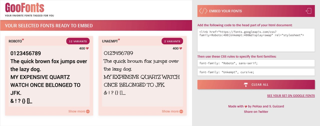 GooFonts - зручний та корисний веб-сайт для пошуку та перегляду шрифтів Google Fonts.
