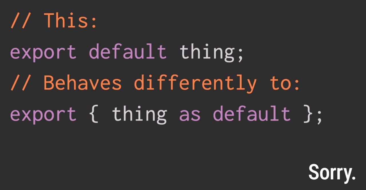 export default thing не те ж що й export { thing as default }. 😲 Джейк Арчібальд про нюанси роботи системи модулів JavaScript.