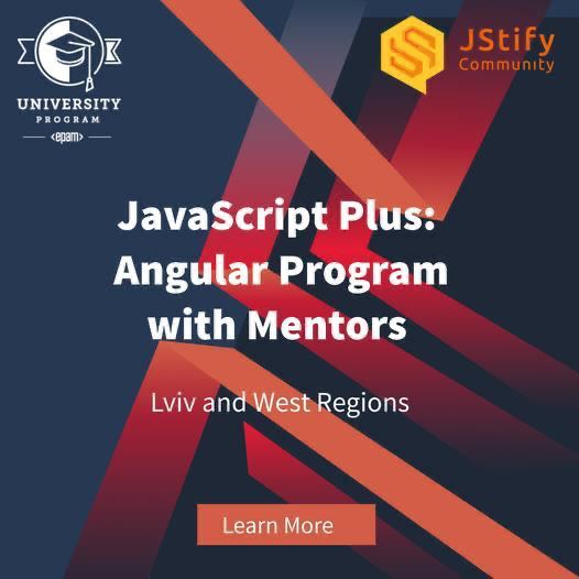 Ментори та експерти JStify Community та EPAM University Program допоможуть учасникам пройти максимально корисну та актуальну для реальних проектів підготовку на позицію Middle Developer.