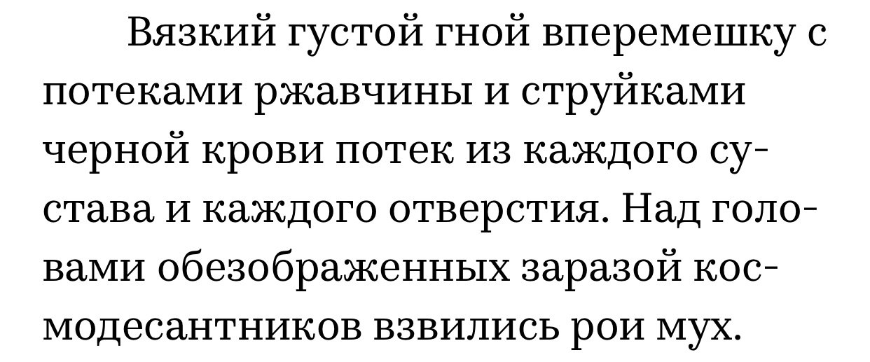 Ну наконец-то я дошла в этих книжках про космодесантников до того, что я люблю - до подробных цветистых описаний гниения.