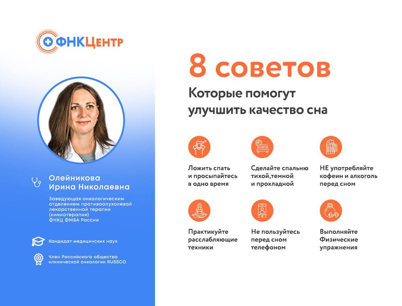 Ирина Олейникова, Заведующая онкологическим отделением противоопухолевой лекарственной терапии (химиотерапии)ФНКЦ ФМБА Росии: