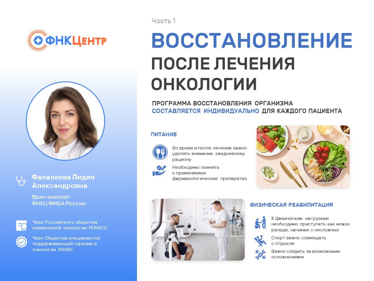 Восстановление после лечения онкологии Пост подготовлен совместно с Лидией Фалалеевой, врачом-онкологом ФНКЦ ФМБА России. Часть 2.
