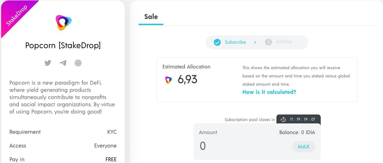 🔸 StakeDrop Popcorn на Impossible Finance!