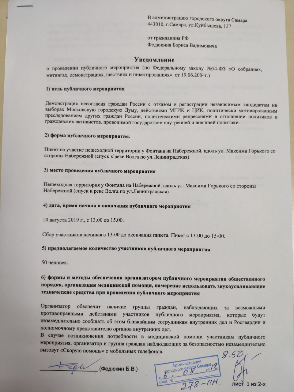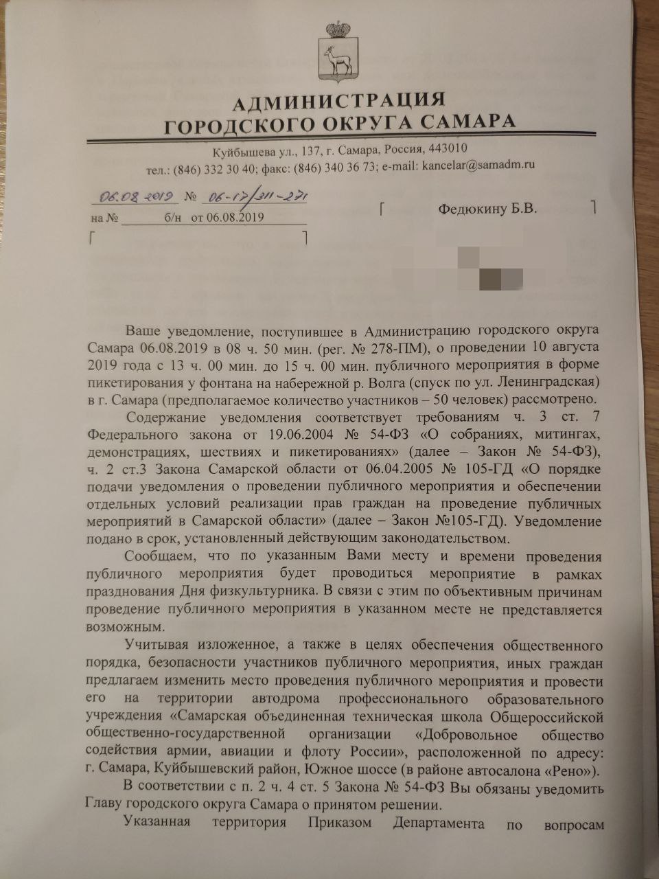 Уже вчера поданное самарским Штабом уведомление на массовый пикет было отклонено администрацией города Самары по известной жульнической схеме. Сегодня мы подали ещё три уведомления, в разные места и в разное время. Пусть сейчас самарская администрация наглядно покажет, кто ставит под дубинки росгвардейцев своих же горожан, а кто хочет проведения мирной акции солидарности против проводимого беспредела. Ответ на этот вопрос мы получим уже сегодня и обязательно вас проинформируем о результатах.