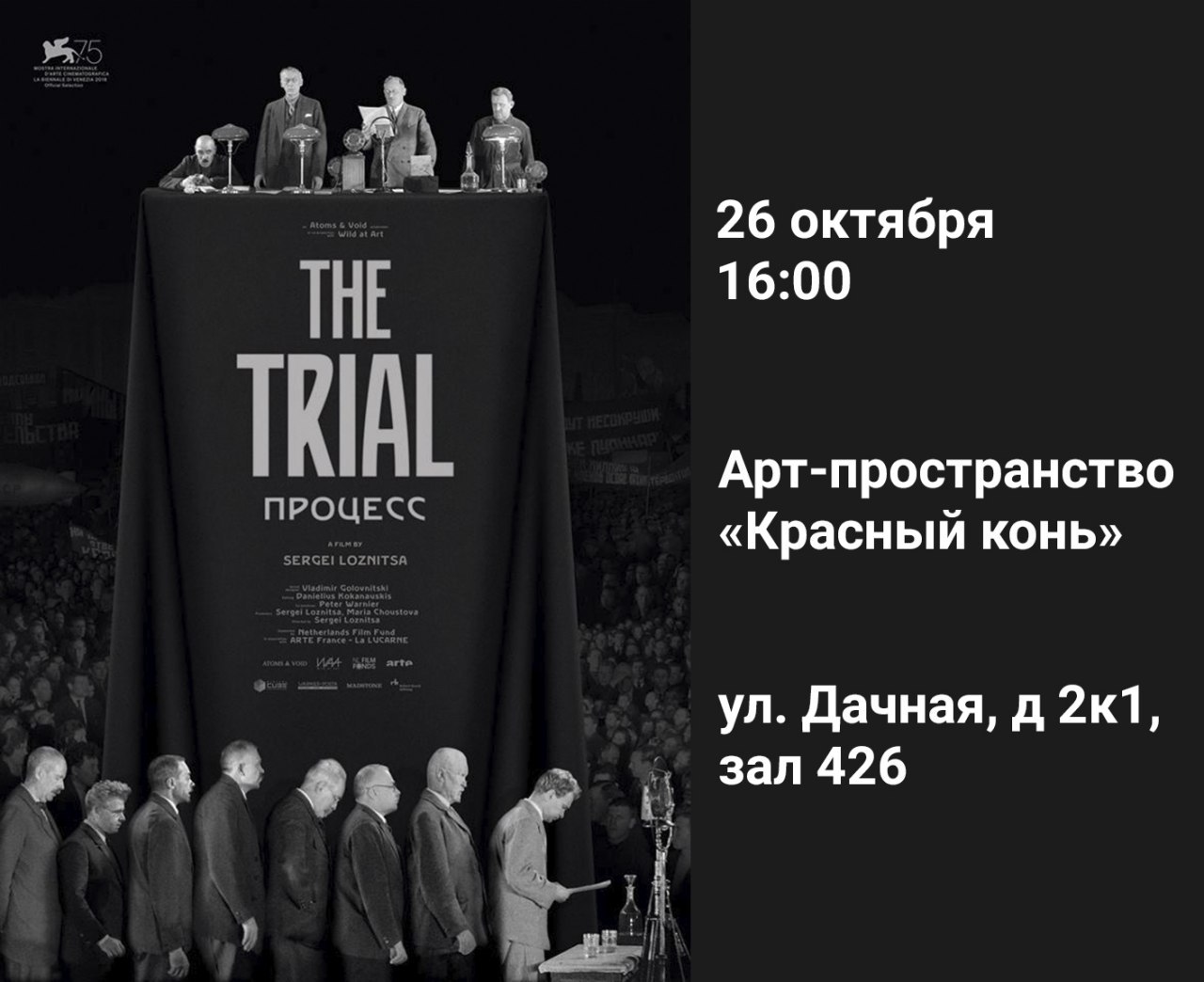 Место: Арт-пространство "Красный конь" (ул.Дачная, д.2к1, зал 426).