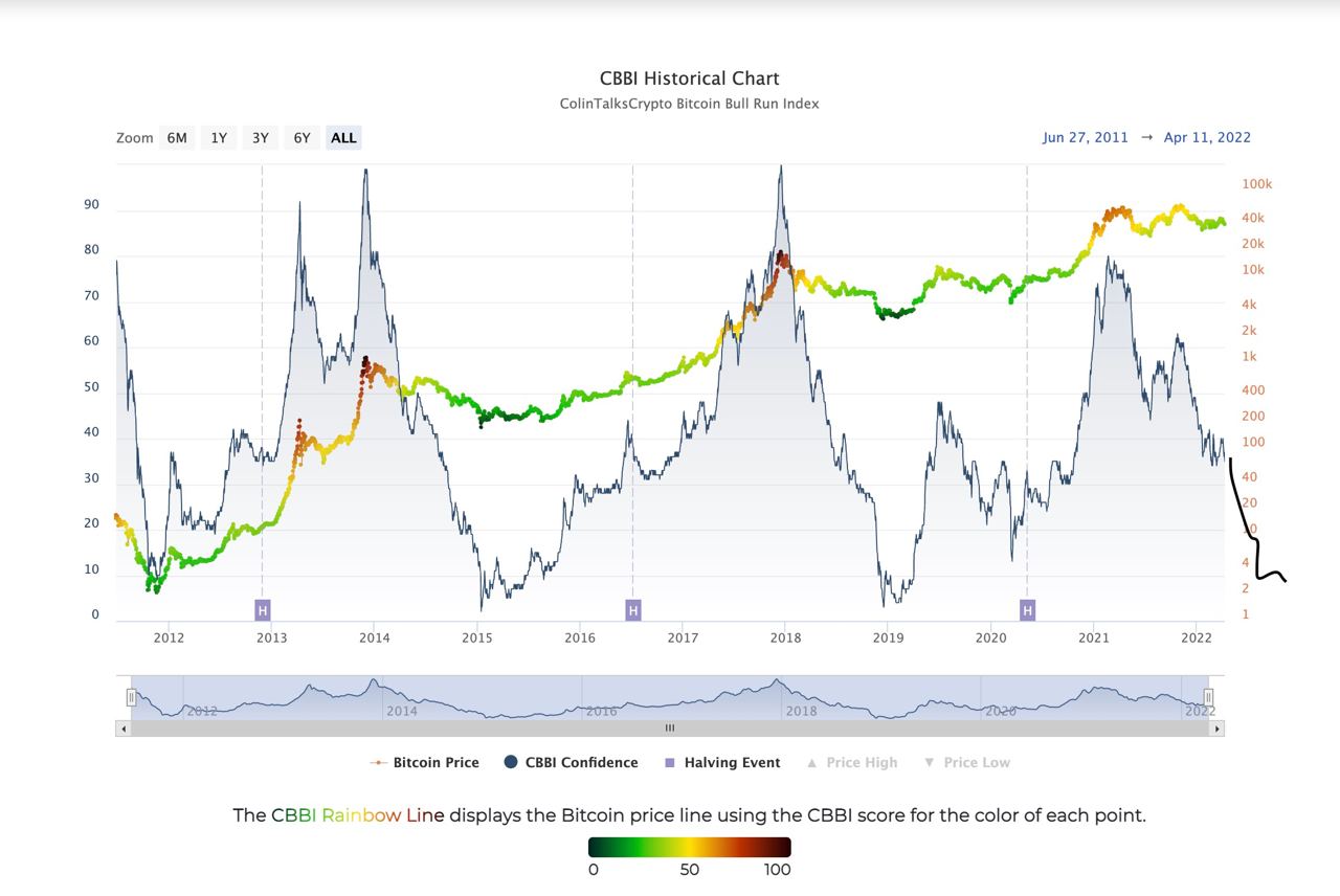 2) Индикатор CBBI для крипторынка. Рассчитывается как индекс из 9 параметров. И пока он ни разу не подвел.