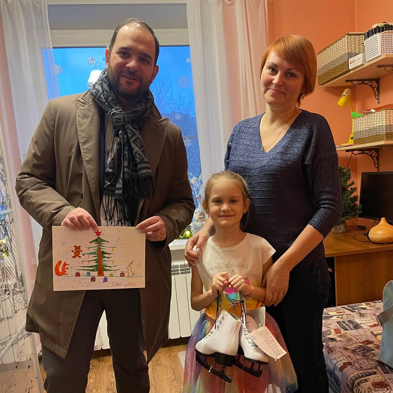 Сегодня я вручил маленькой жительнице Москвы - Лизе - подарок, который она загадала Деду Морозу. Это красивые белые коньки для девочек.