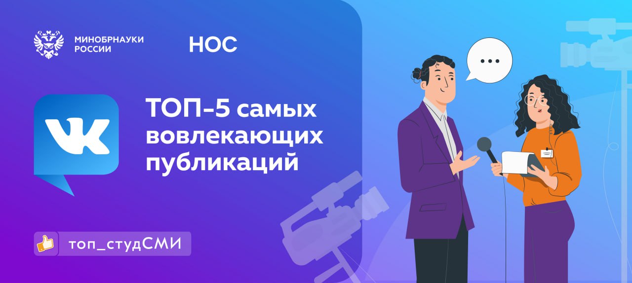 📌 Топ-5 подготовлен агрегатором студенческих СМИ НОС. В него входят медиацентры, участвующие в рейтинге студенческих СМИ.