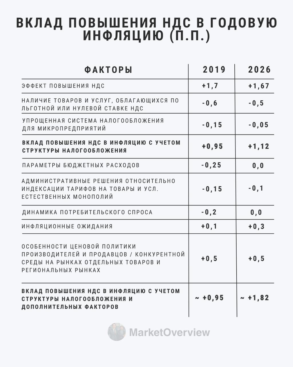 Отсылка к 2018-2019 году хороша и тогда ЦБ еще в августе 2018 года выпустил "Доклад об оценке влияния повышения основной ставки НДС на инфляцию". Перед этим повышением нас фактическими расчетами не балуют (только словесными), поэтому попробуем взять методику оценки 2018 года и пересчитать для реальности 2026 года.