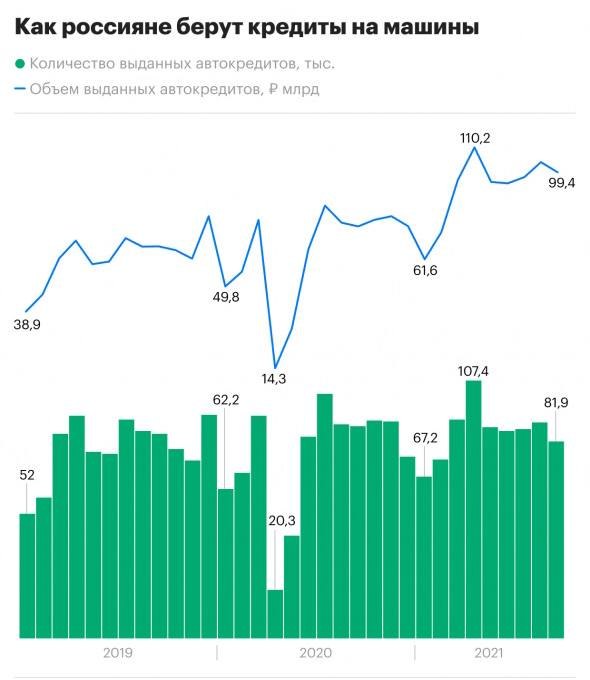 Этот результат — скорее следствие пандемии. В 2020 году, когда ставки по кредитам снижались, российские банки выдали автокредитов на 769,8 млрд руб. (это и есть предыдущий рекорд), а в докризисном 2019 году 749,7 млрд руб.