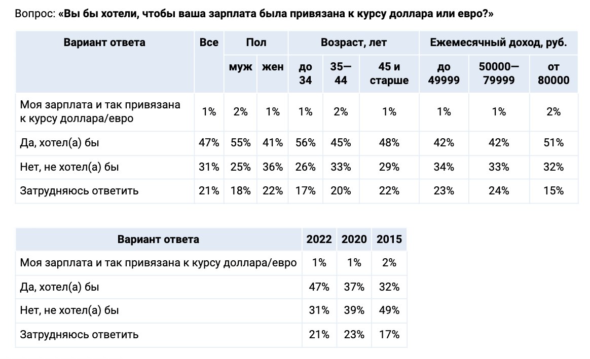 ▪️47% россиян хотели бы привязать свою зарплату к курсу доллара или евро. В таких условиях уже работают многие менеджеры высшего и среднего звена.
