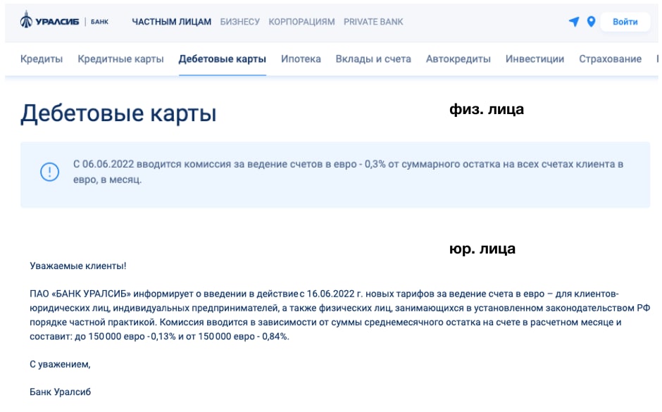 ⚡️Банк Уралсиб вводит комиссию на счета в евро