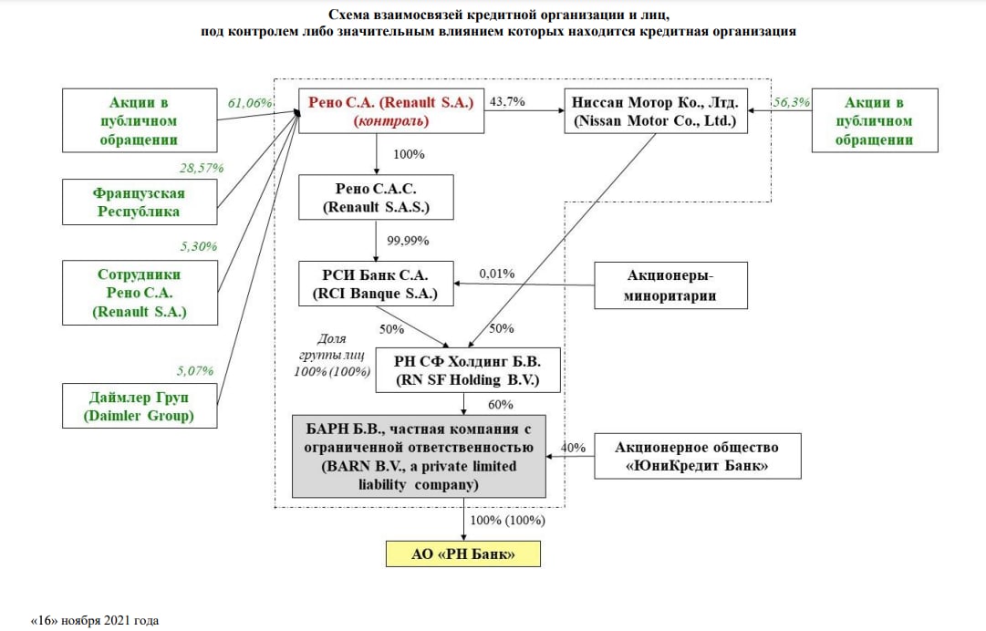 РН Банк принадлежит концерну Renault-Nissan и Юникредитбанку. Рено объявил об уходе из России, продав долю в Автовазе. Nissan приостановил деятельность петербургского завода Ниссан Мэнуфэкчуринг Рус из-за сложностей в поставке комплектующих. Продажи новых автомобилей не восстановились. Можно ожидать продажу банка и кредитного портфеля.