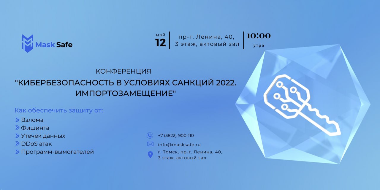 Mask Group|Кибербезопасность pinned «🔐Кибербезопасность в условиях санкций 2022. Импортозамещение • Конференция посвящена вопросам информационной безопасности в условиях ухода зарубежных вендоров. • Поделимся практиками и опытом отражения реальных атак сотрудниками Mask Safe в период интенсивной…»