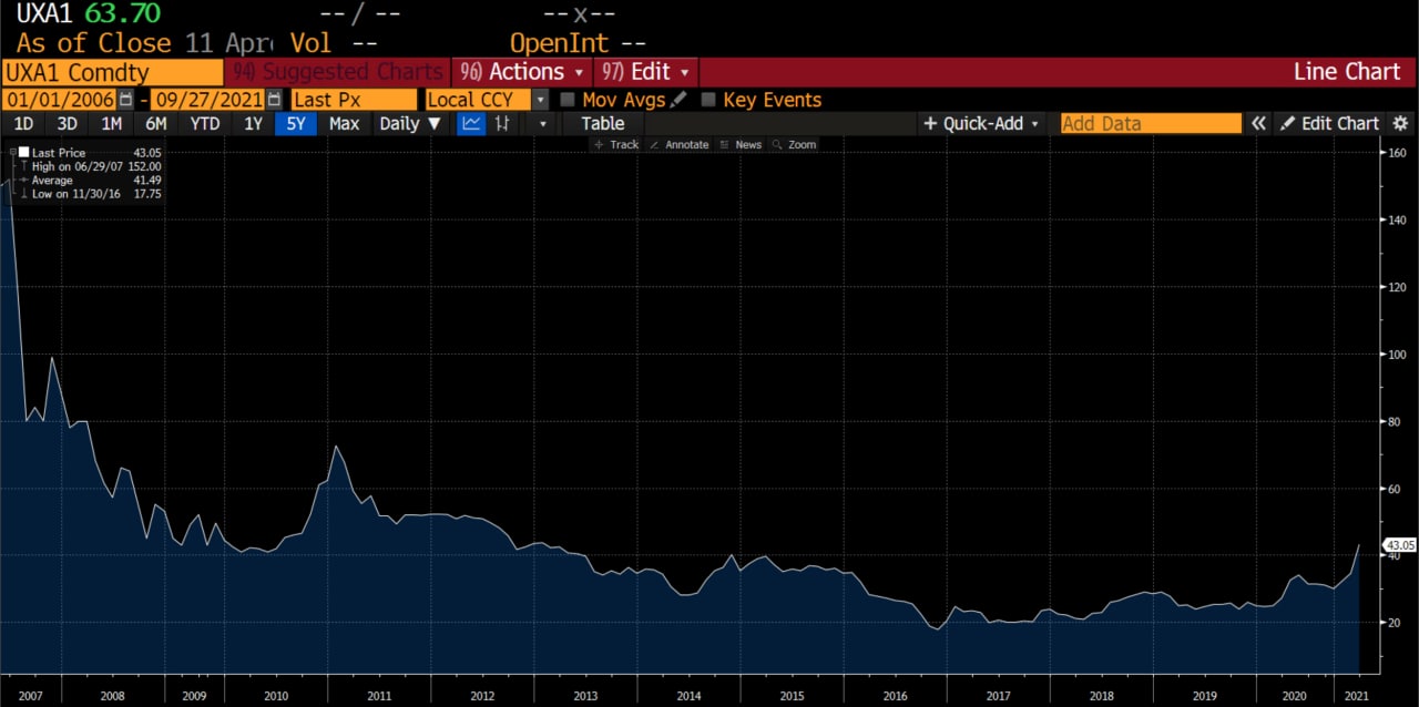 • После 10 лет без особых движений цена на уран начала расти в 2020.