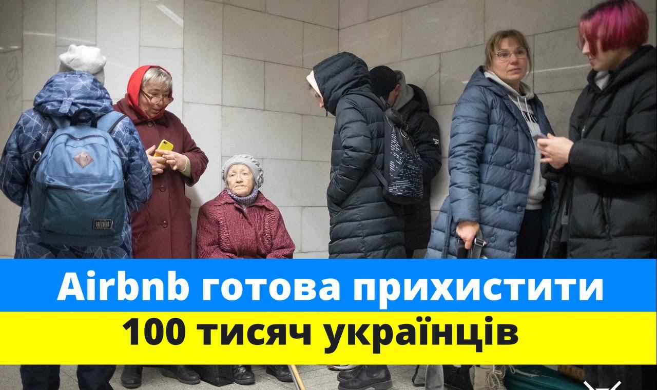Компанія Airbnb заявила, що готова забезпечити безкоштовним тимчасовим житлом 100 тисяч українських біженців.