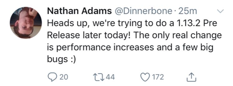 Uscito il primo Pre-Rilascio della versione 1.13.2!