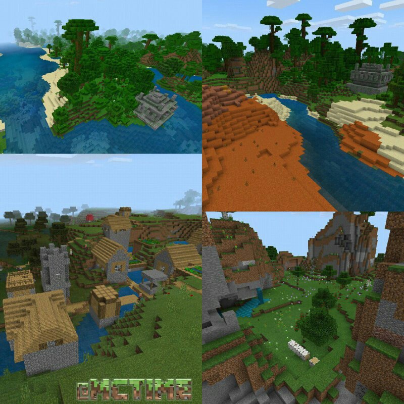 Con questo seed spawnerai in una giungla con subito affianco un tempio e una mesa, esplorando ancora la zona troverai un'altro tempio con una barriera corallina affianco e spostandoti di un po troverai un villaggio vicino una palude con vicino anche un magnifico paradiso di fiori e colline.