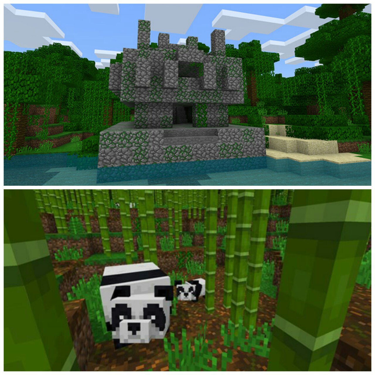 Questo seme ti genererà in una giungla e proprio di fronte a te troverai un tempio nella giungla. Anche se è abbastanza spettacolare da solo, non è l'unica cosa fantastica di questo seme. Non lontano dallo spawn troverai una foresta di bambù e se sei fortunato anche alcuni panda. Poiché le foreste di bambù sono strettamente limitate alla versione 1.9 e oltre, avrai bisogno dell'ultima beta per trovarla.