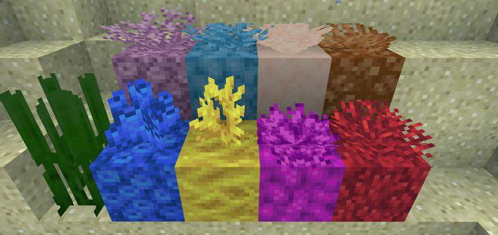 Questo è un pacchetto di risorse che sostituisce le varianti di coralli morti con nuovi coralli. Se ti piace usare i coralli per decorare sott'acqua ma vuoi qualche altra opzione, questa potrebbe essere una soluzione.