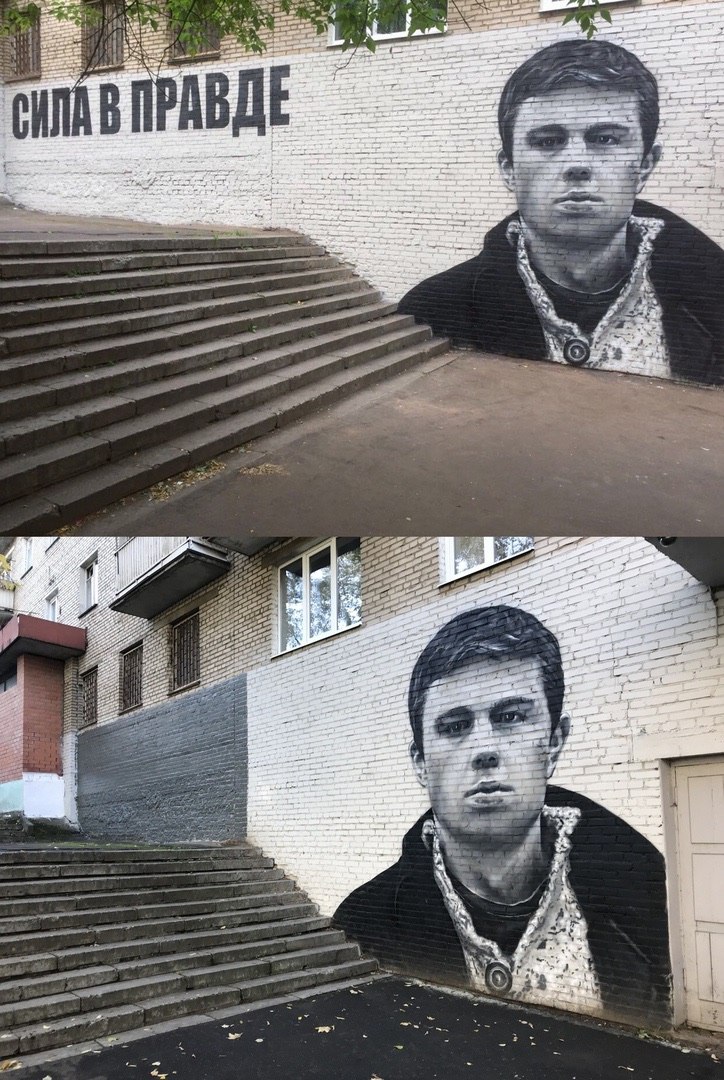 3. В Красногорске к приезду Медведева закрасили надпись «сила в правде». Одна из версий, почему это сделали - надпись была испорчена вандалами;
