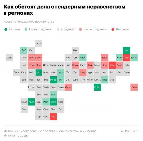 Проект «Если быть точным» изучил данные Росстата и ЕМИСС и подготовил рейтинг трудового равноправия мужчин и женщин под названием «Гендерное (не) равенство в регионах России». Если коротко — мы отсталое общество.