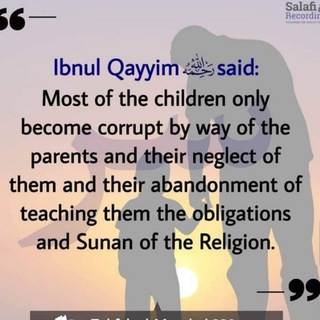 This is an excerpt from the book of: Imam Ibn Qayyim al-Jawziyyah (d. 751 AH), a famous book called Tuhfat al-Mawdood bi Ahkaam al-Mawlood. One of the most important chapters of his book is the sixteenth chapter, which is ennoscriptd Fi fusool naafi’ah fi Tarbiyat al-Atfaal tuhmad ‘awaaqibuha ‘ind al-Kabr (Useful advice on raising children which will have good consequences when the child grows up).