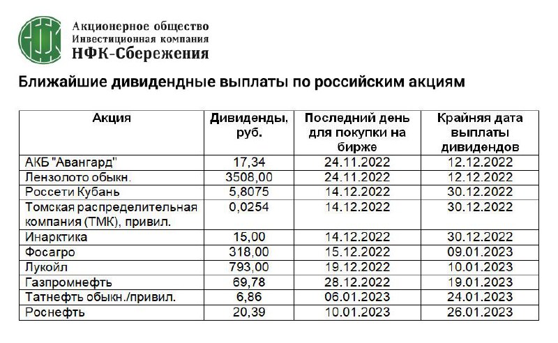 ▫️Россети Центр и Приволжье (+2,34%). Совет директоров проголосовал за выплату дивидендов по результатам 9 месяцев 2022 года в размере 0,03015 рублей на одну обыкновенную акцию. Дата составления списка лиц, имеющих право на получение дивидендов (дата закрытия реестра) – 08 января 2023 года.