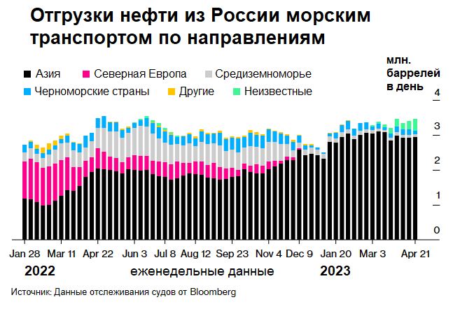 Bloomberg сообщает, что экспортные отгрузки нефти из России вышли на новый максимум.