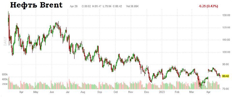 ▫️Нефть Brent -2,5% ($80,65 за барр.).