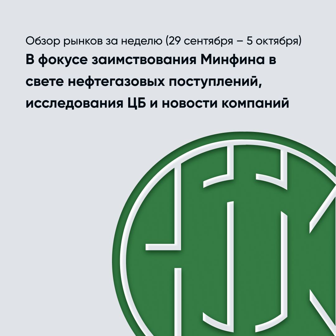 Обзор рынков за неделю (29 сентября – 5 октября): В фокусе заимствования Минфина в свете нефтегазовых поступлений, исследования ЦБ и новости компаний