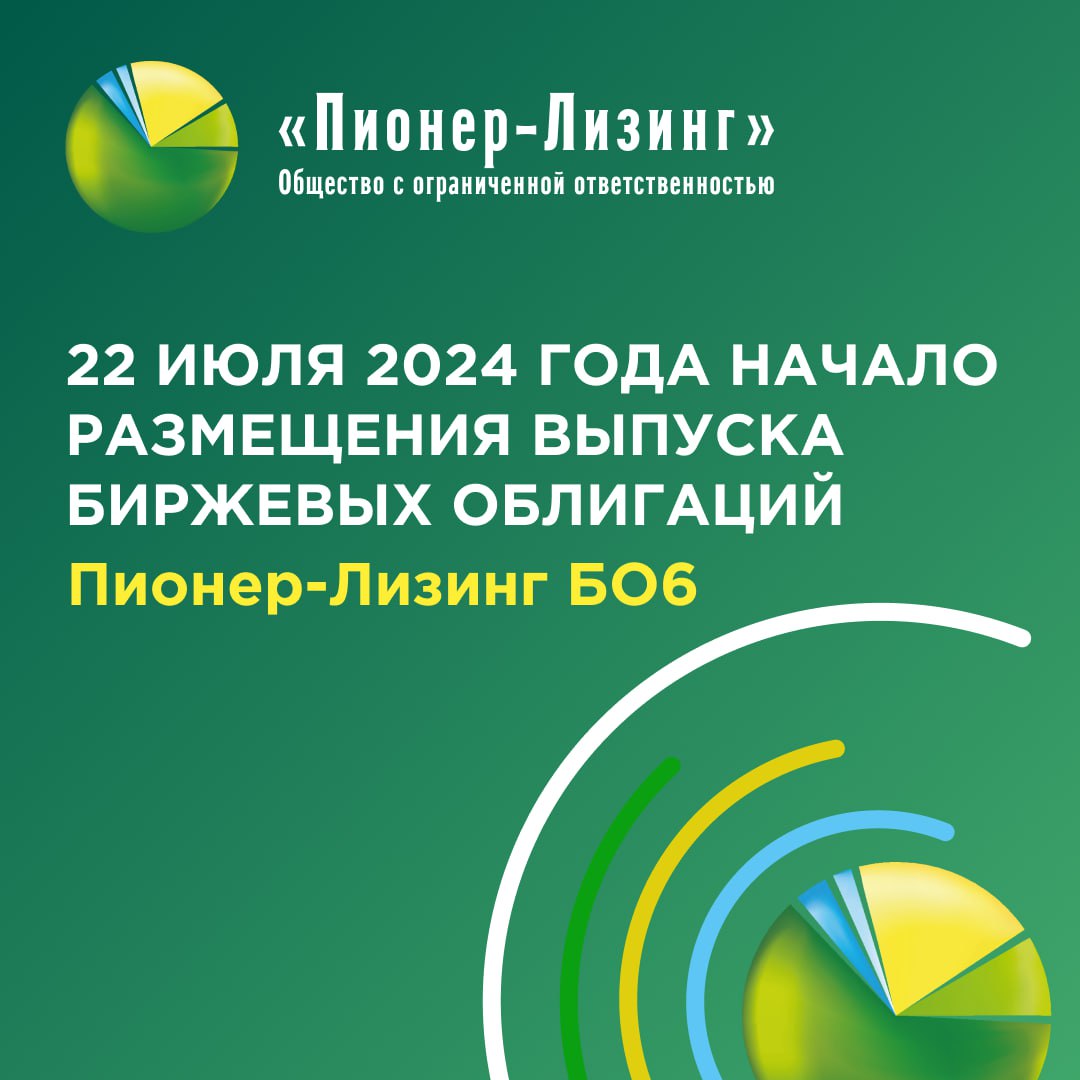 📣 Сегодня, 22 июля 2024 года, началось размещение шестого выпуска биржевых облигаций Пионер-Лизинг БО6 с переменным купоном для квалифицированных инвесторов.