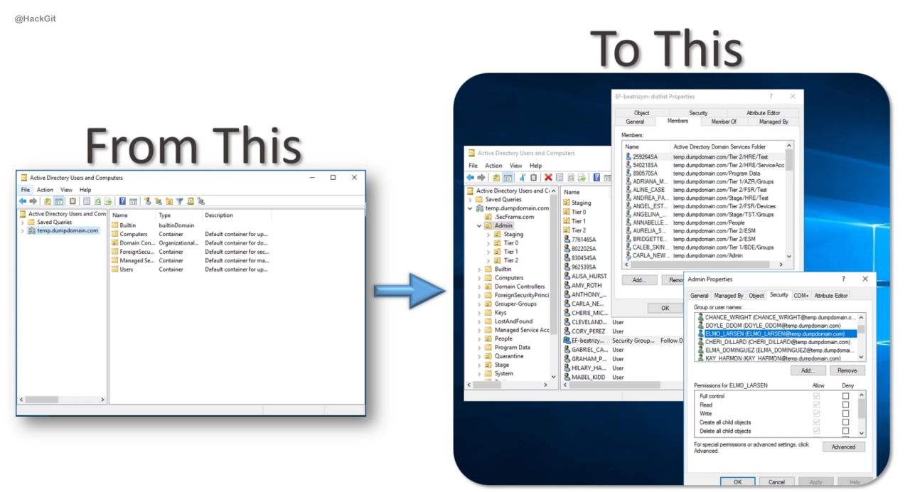 BadBlood by Secframe fills a Microsoft Active Directory Domain with a structure and thousands of objects. The output of the tool is a domain similar to a domain in the real world.