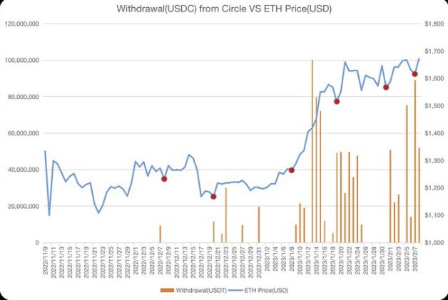 Уже более $1,0 Bn USDC выведено неизвестным крипто-китом с Circle, которые сразу же переводятся на централизованные биржи в преддверии крупных новостей: заседание ФРС, публикация данных по инфляции. Данные выводы ранее всегда сопровождались резким ростом рынка.