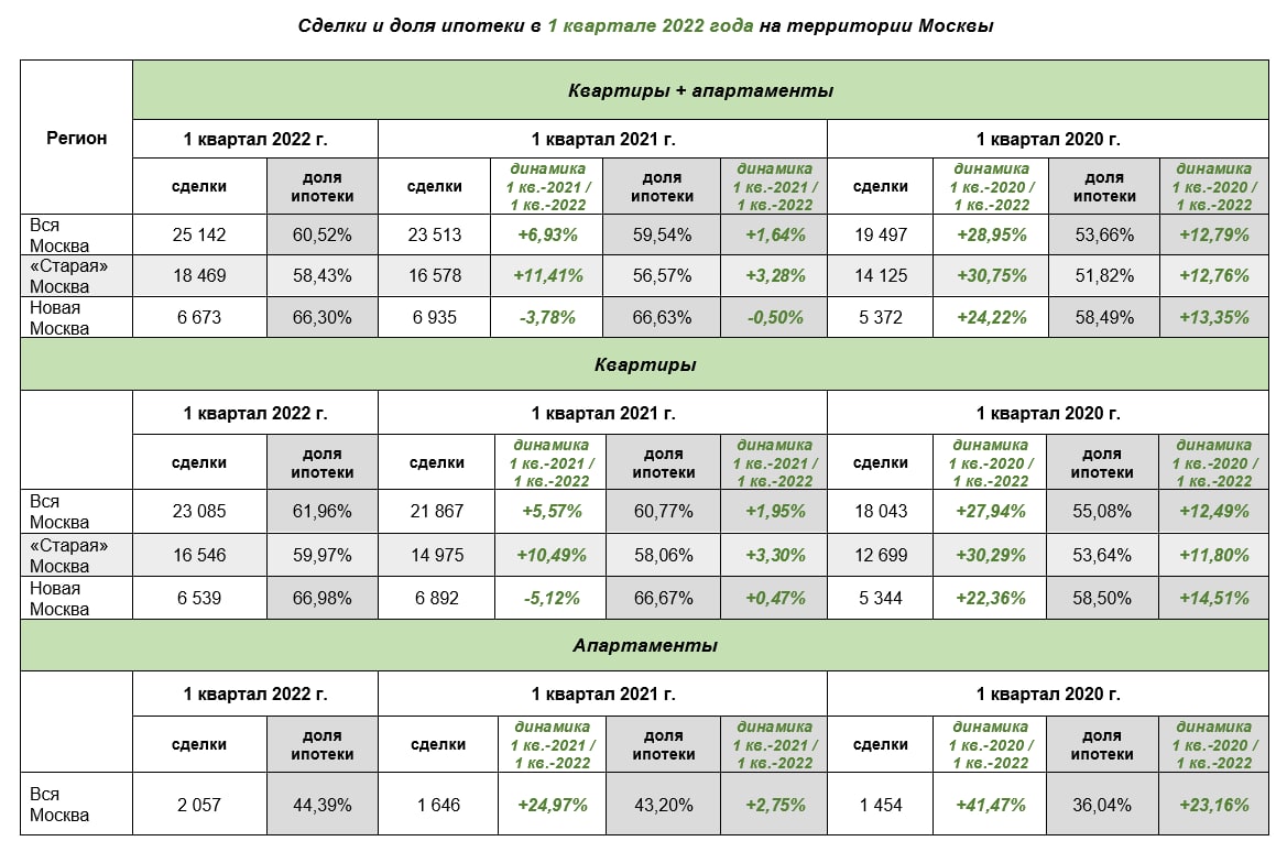 А вот и диаграммы. Москва, 1 квартал-2022, с разбивкой по квартирам/апартаментам и отдельно по "старой" и Новой Москве.