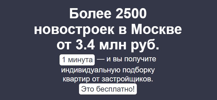 В Москве продается 2500+ новостроек от 3,4 млн рублей за лот – есть смысл сэкономить время и сузить выборку до небольшого количества самых подходящих вариантов.