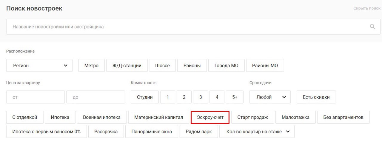 Кстати, если вы хотите найти новостройки, которые продаются через эскроу-счета, мы расширили параметры поиска на нашем сайте.
