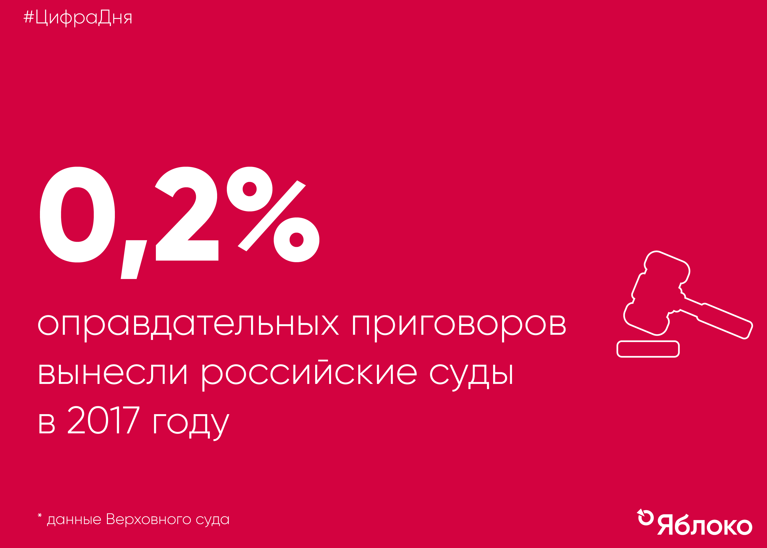 В день проведения акции «Возвращение имен» будет уместно напомнить об особенностях российской судебной системы. Цифра в 0,2%, впрочем, не такая однозначная, считает большинство экспертов. Надо учитывать и статистику дел, прекращенных судом, и многие другие факторы. Однако все они сходятся в одном: судьи не могут, не хотят и не умет принципиально оппонировать оперативникам, следователю и прокурору, потому что считают себя частью правоохранительной системы. А люди заключают соглашения со следствием, попросту не веря в правосудие.