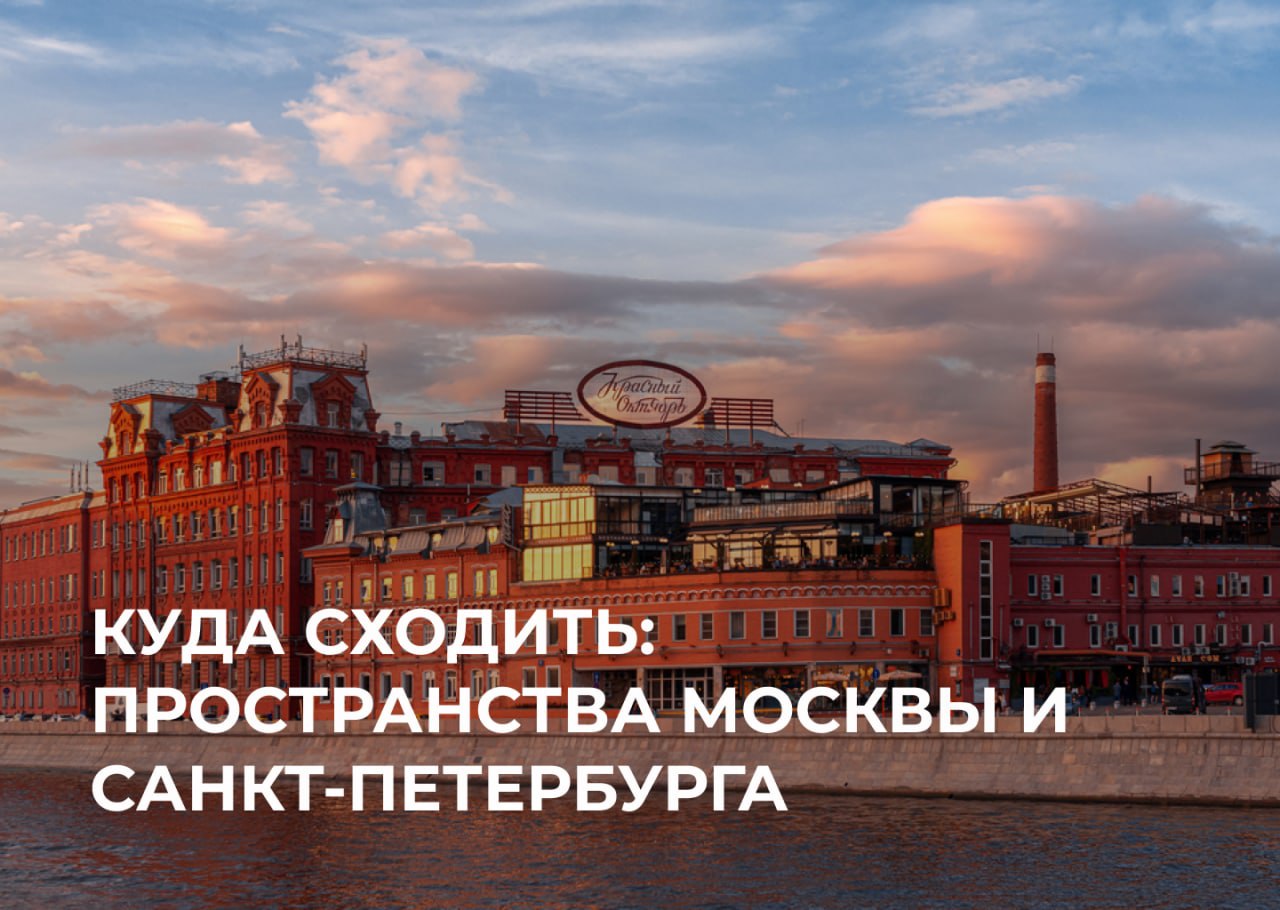 ​​Общественные пространства Москвы и Санкт-Петербурга будто маленькие города, спрятавшиеся в мегаполисах. В них есть, кажется, всё и даже чуточку больше. Именно поэтому они прекрасно выручают, если на выходных вы никуда не поехали и сидеть дома совсем не хочется. А для гостей столиц — это интересные локации, в которых можно почувствовать себя местным жителем.