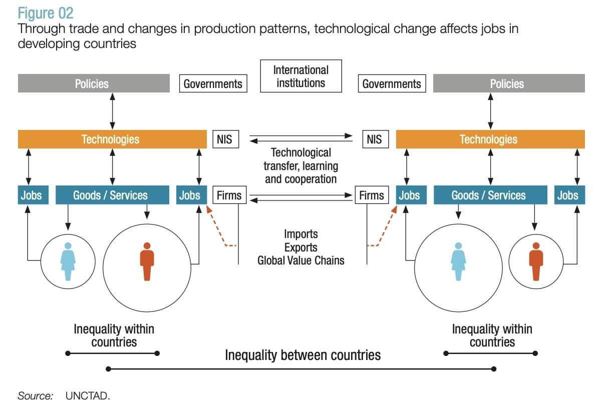 В отчете уделено внимание влиянию технологических изменений на рабочие места в развивающихся странах.