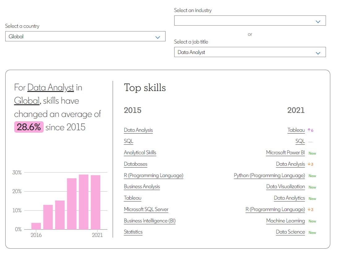 Для понимания изменений навыков, сначала были определены наиболее важные навыки для выполнения конкретной работы в прошлом, а затем они сравниваются с навыками, которыми работник обладает сегодня для выполнения той же работы. Анализ показал, что навыки изменились в среднем на 25% в мире с 2015 года. И в большинстве случаев темпы изменений ускорялись во время пандемии COVID-19. Если изменения продолжатся такими темпами, то навыки могут измениться где-то с 39% до 44% уже к 2025 году.