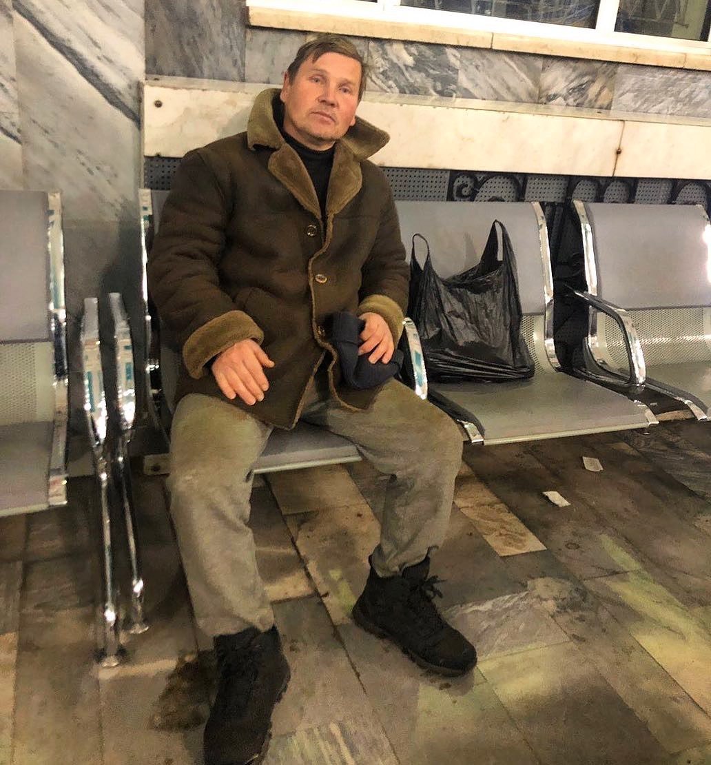 Мужчина активно ищет любую подработку, но ночевать ему пока приходится на вокзале, днём тусит в приюте для бездомных.