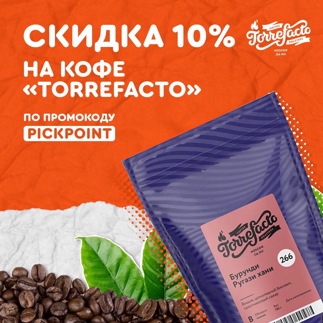 #pickpointскидки 🔥10% скидка🔥на очень вкусный кофе @torrefacto_ru по промокоду «pickpoint». Регистрируйтесь на сайте https://www.torrefacto.ru/, чтобы воспользоваться предложением ☺ Скидка распространяется на всё категории кофе, кроме B+ 🧡