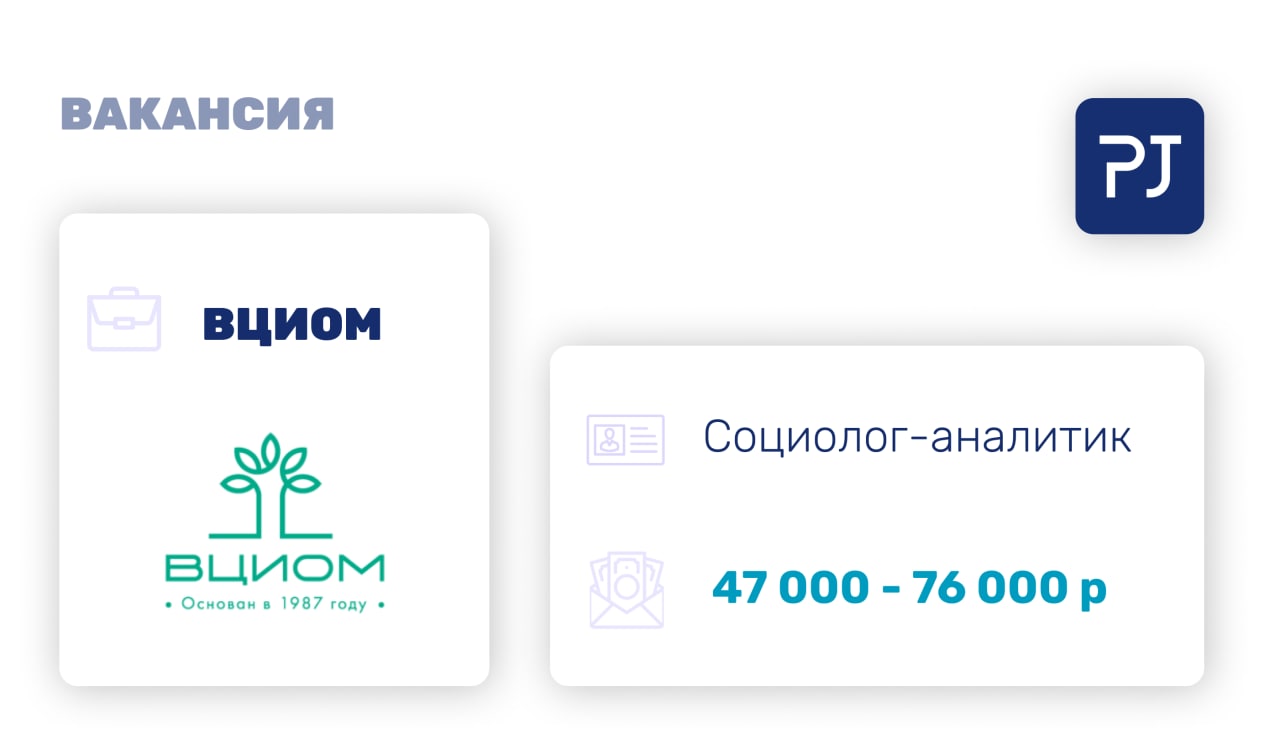 — Знаем лично экспертную команду, и уверены, работа во ВЦИОМ — это действительно интересно и масштабно: нетривиальные задачи, здоровая корпоративная культура, доступ к образовательным программам и научным мероприятиям, а также экологичный офис и хороший уровень поквартального премирования.