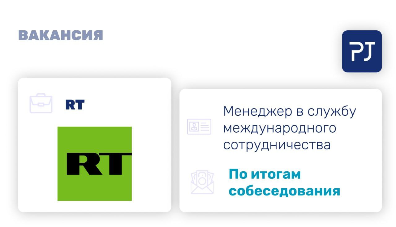 — Работодатель – один из ключевых каналов информационного взаимодействия между Россией и другими государствами. Работая в RT, вы сможете лучше понять культуру других стран, узнать реальное мнение иностранных граждан о происходящих вокруг событиях и понять, какое место занимает Россия в международной политике.