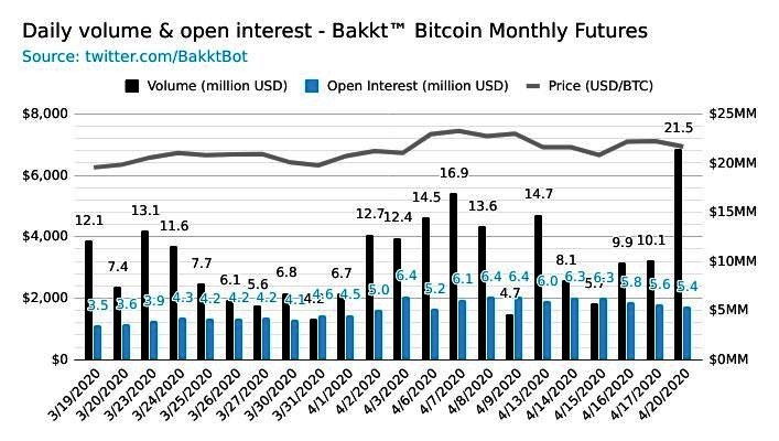 20 апреля на платформе BAKKT, наблюдался рекордный объем торгов за март, а возможно и за все предыдущие месяцы.