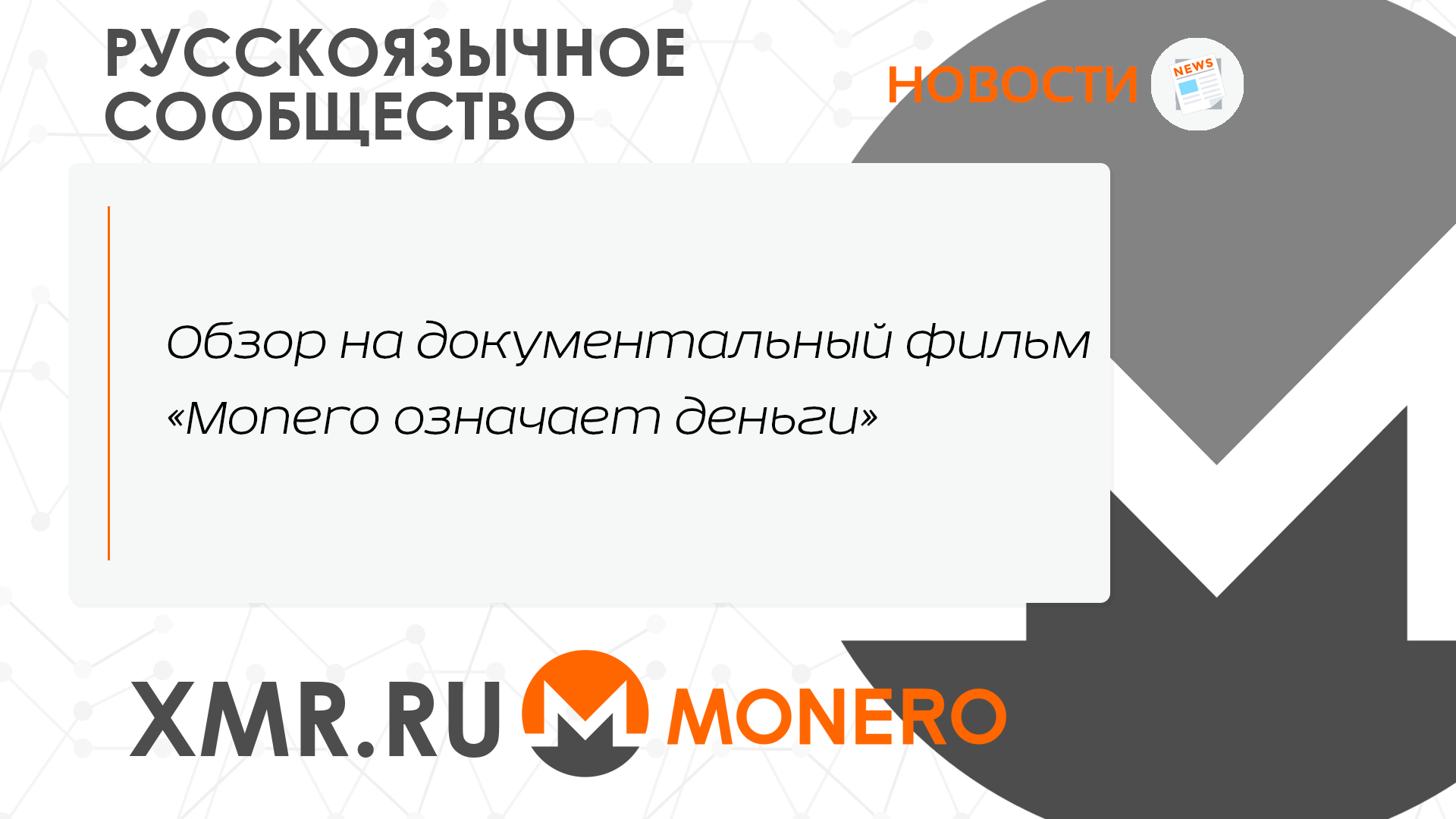 Напомним, что независимый фильм о Monero недавно занял первое место в чартах кассовых сборов США с общим объемом продаж всего 3430 долларов главным образом благодаря массовому закрытию кинотеатров во время пандемии COVID-19. Продюсер фильма Джастин Эхренхофер (Justin Ehrenhofer) недавно связался с Cointelegraph, чтобы сообщить нам, что фильм «Monero означает деньги» теперь доступен для бесплатного просмотра на YouTube, так что мы решили его просмотреть.