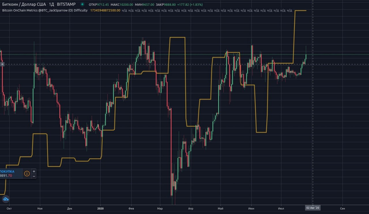Итак, с точки зрения теории приведенной по ссылкам выше - этот рост туда не вписывается. Сейчас, не идет никаких распродаж оборудования, во время которых необходимо держать доходность продаваемых асиков согласно изменениям сложности. (не аномальный пример работы корреляции сложность цена, при соблюдении всех необходимых условий - вот тут) Более того, через 215 блоков ожидается пересчет сложности вниз (около минус 5%) , а цена движется в обратном сложности направлении.
